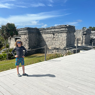 Lors des derniers jours, on profite des alentours de l'hôtel. Nous marchons à la marina, Tristan essai d'y pêcher quelques poissons. Nous observons les dauphins dans les bassins de Dolphin Discovery. Malgré mon désaccord avec l'encagement de ces mamifères, c'est très beau à voir jouer! Nous avons aussi pris un taxi pour aller visiter les ruines de Tulum. Un site achéologique Maya sur le bord de la mer offrant une vue imprenable sur l'océan et un retour dans le temps. Des anciens temples/pyramides sont encore debout afin de découvrir ce monde mystérieux. Sur la route du retour, nous arrêtons aux Cenotes "Casa Tortuga". Un site où plein de rivières souterraines forment des stalactites, stalagmites et des caves semi-ouvertes où l'on peut se baigner et admirer ce phénomène naturel. Une belle découverte pour toute la famille!